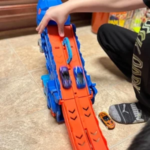 Мій 6-річний син обожнює цю іграшку. Вона дуже крута і має дві машинки. Він хоче брати цю іграшку з собою всюди. У неї є ручка, тому її легко носити. Він ще не впускав її, тому я не можу перевірити її на міцність, але вона здається досить міцною.