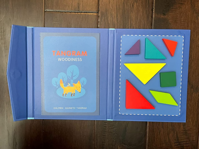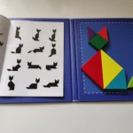 Танграм купував для сина 4 років. Гра його дуже зацікавила, довго сидів складав. Деталі танграма якісні, дерево без запаху, за таку ціну супер іграшка. Папка тверда , добре тримає магнітні елементи, зображення-завдання різноманітні.